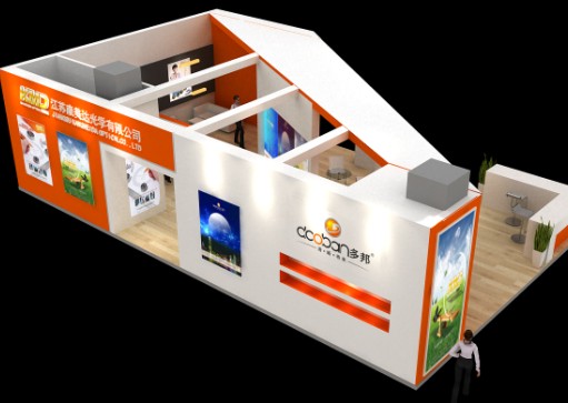江苏康美达光学有限公司2013年北京展位位于1号馆(国际馆)2楼B345-B352,占地104平方米。通过半敞开式的设计使集团公司名称清晰可见,较为突出。而展馆中心的品牌墙,使集团公司下的康美达、多邦、康尔明得以充分展示,通过2个电视,让客户充分感受公司的企业文化和发展历程,以及在央视投放的广告片。