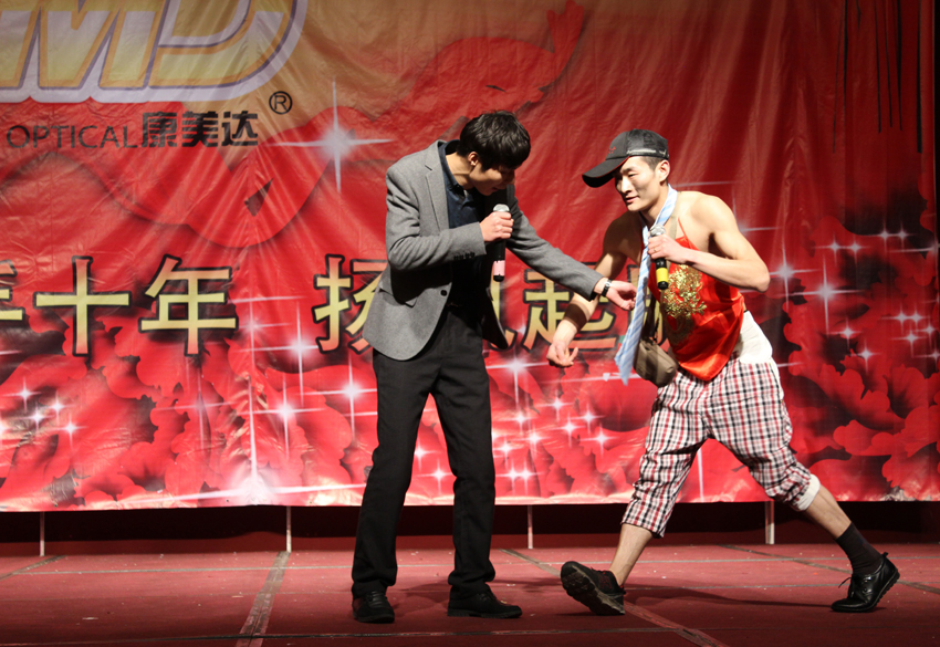 现在的康美达光学是从它的前身——康尔明光学发展而来的,迄今,它已与广大客户风雨同舟、携手并进了10个年头。因此,为了庆祝它的十周岁生日,康美达特邀曲美和朱璟两位老师担任本次年会暨十周年庆典的主持人,并在五星级酒店水中仙·东方会馆大摆筵席,让全体康美达人共聚一堂,在清歌雅舞、觥筹交错、欢呼雀跃声中共同见证这一历史时刻!