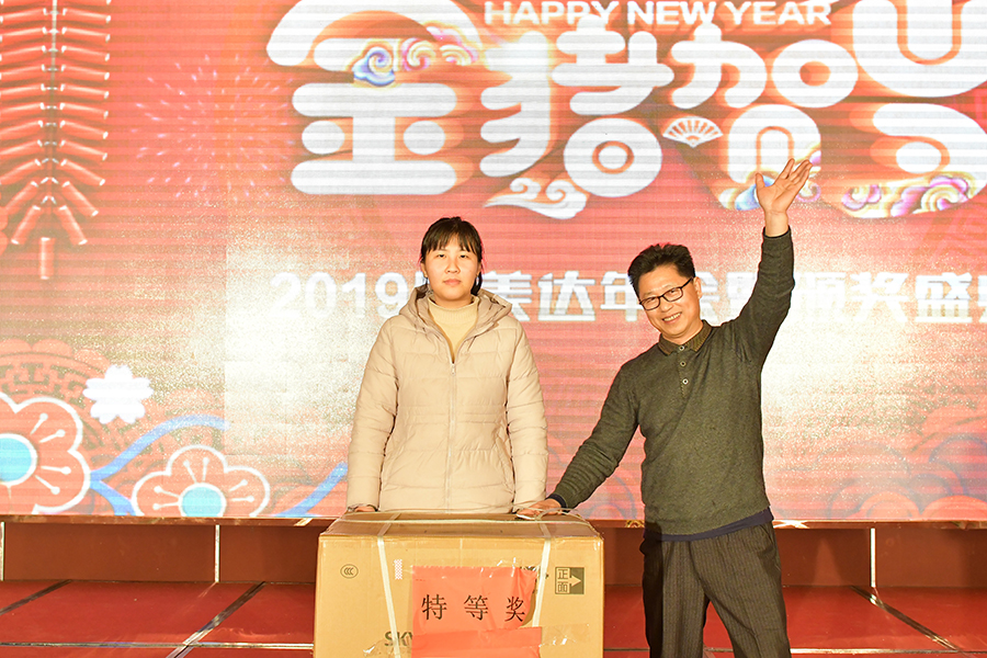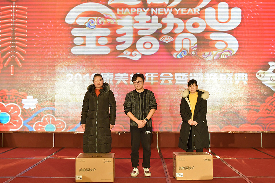 精彩的节目表演中间还穿插了激动人心的抽奖环节,随着鼓励奖、四等奖、三等奖、二等奖、一等奖、特等奖的抽取,极大地调动了康美达人的热情,掌声和欢呼声一直在现场荡漾,将现场的氛围推向一个又一个高潮。所有抽奖环节贯穿整个年会的始终。奖品也颇为诱人,洗衣机、微波炉、现金红包、购物卡、高档蚕丝被、各种小家电等奖品应有尽有。裘云奇和裘云杰两位副总经理更是在现场发出多个高金额的微信红包,在现场掀起一股抢微信红包的热潮。