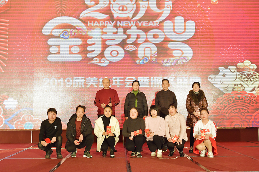 年会伊始,先由副总经理裘云奇、裘云杰等先后隆重致辞,他们回顾了过去一年所取得的成绩,展望未来美好的前景,并对在座嘉宾和康美达人表达了深切的祝愿和新年祝福。