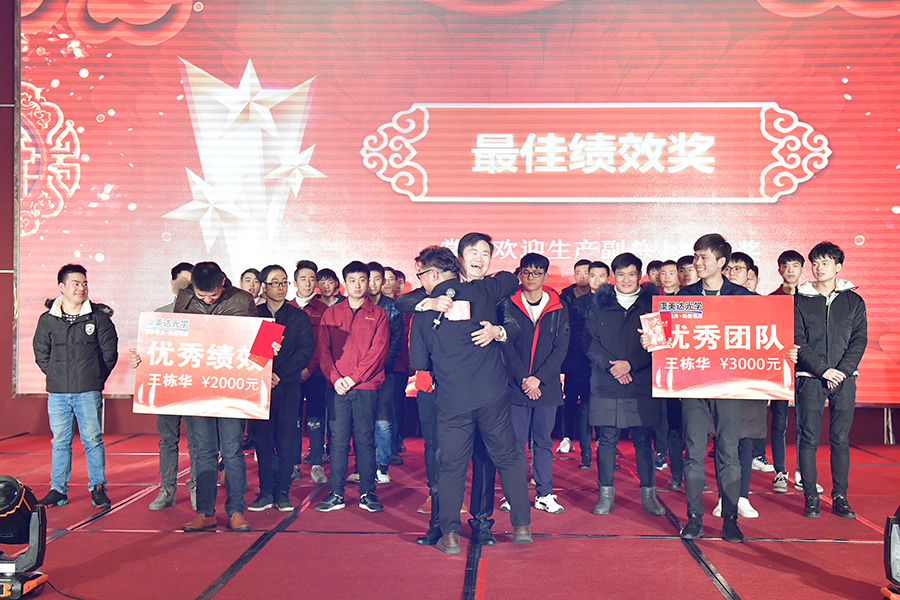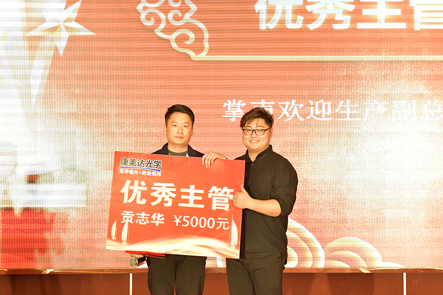 康美达光学在2018年交出了一份满意的答卷,离不开每一位员工的辛勤耕耘。年会上,康美达光学对这一年来表现出色的精英们予以物质上和精神上的双重表彰。公司领导为获奖精英们颁发了销售冠军奖、优秀主管奖、最佳绩效奖、优秀团队奖、优秀员工奖等多个奖项,并鼓励获奖者戒骄戒躁,在新的一年起模范带头作用,做出新的贡献。优秀员工代表更上台为大家分享了他们的点滴感受与对公司的诚挚祝福,从他们饱含深情的发言中,我们感受到他们对康美达光学的深情与热爱。
