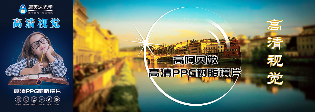 采用美国PPG原材料,阿贝数达到58,折射率为1.501,